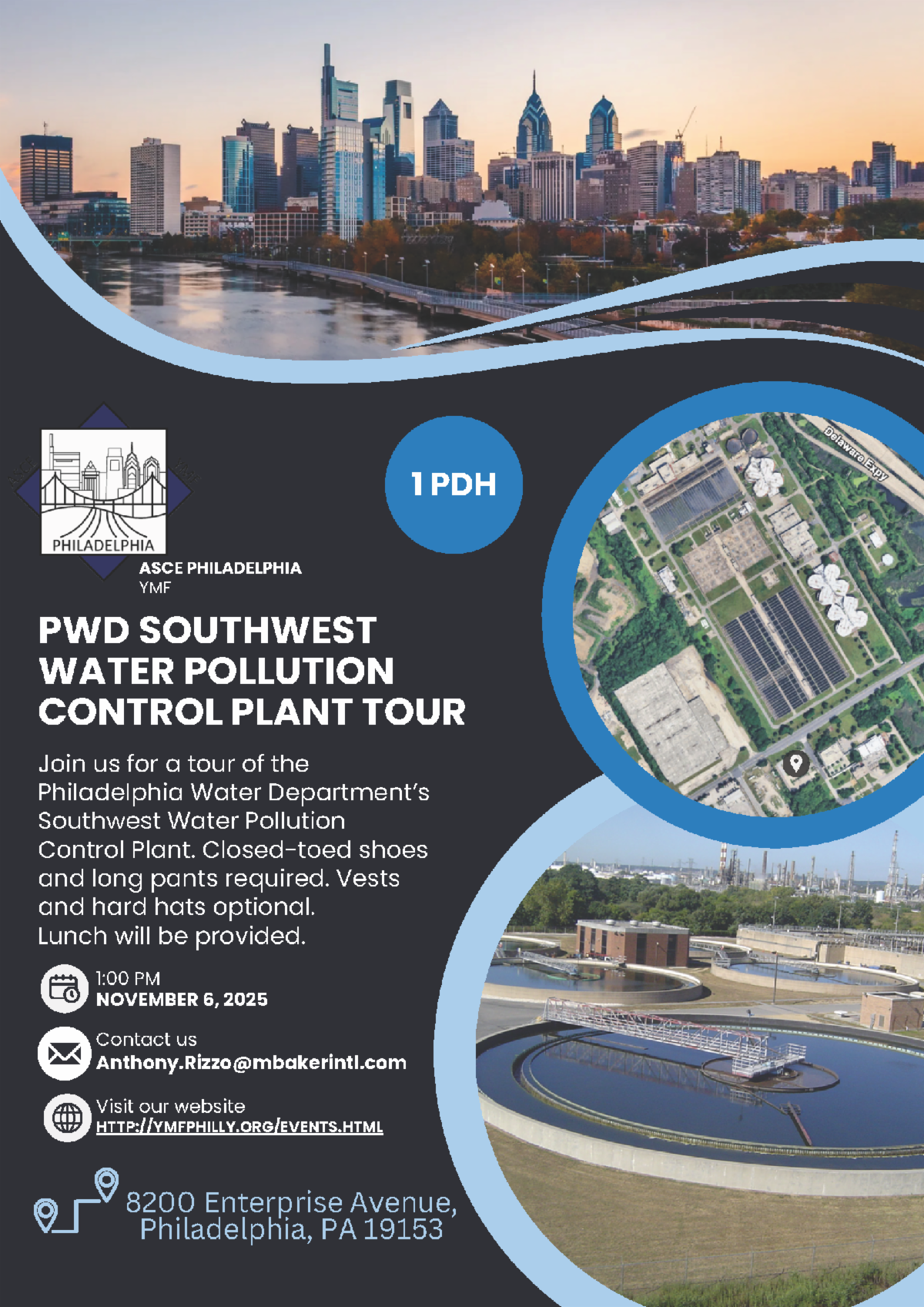 The ASCE Philadelphia YMF invites you to explore the evolution of urban wastewater engineering with a guided tour of PWD’s Southwest Water Pollution Control Plant (SWPCP). Engineers will also gain perspective on the plant operations and considerations for the design and construction of large-scale projects.