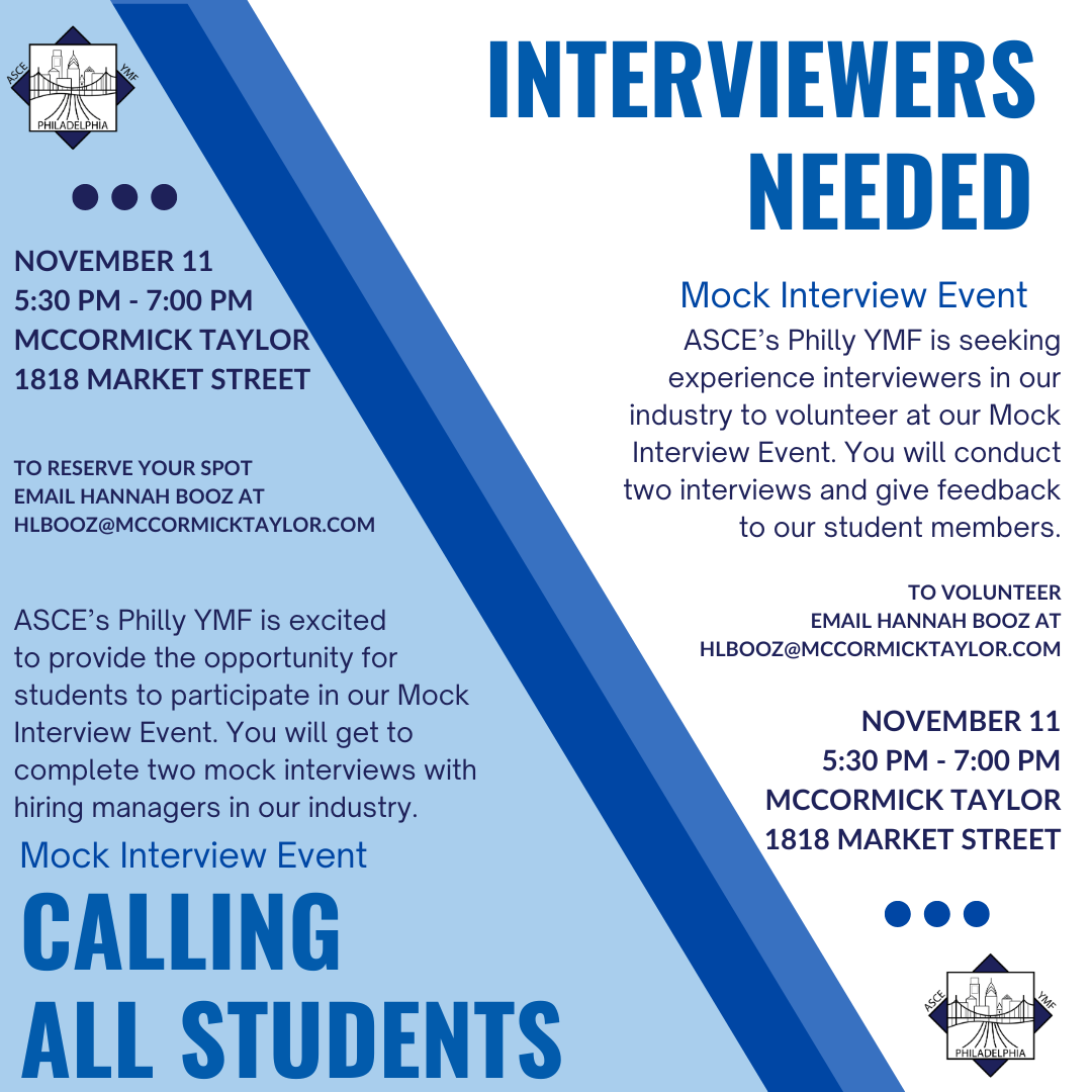 ASCE YMF Mock Interview Event Call for Interviewers AND Student Participants